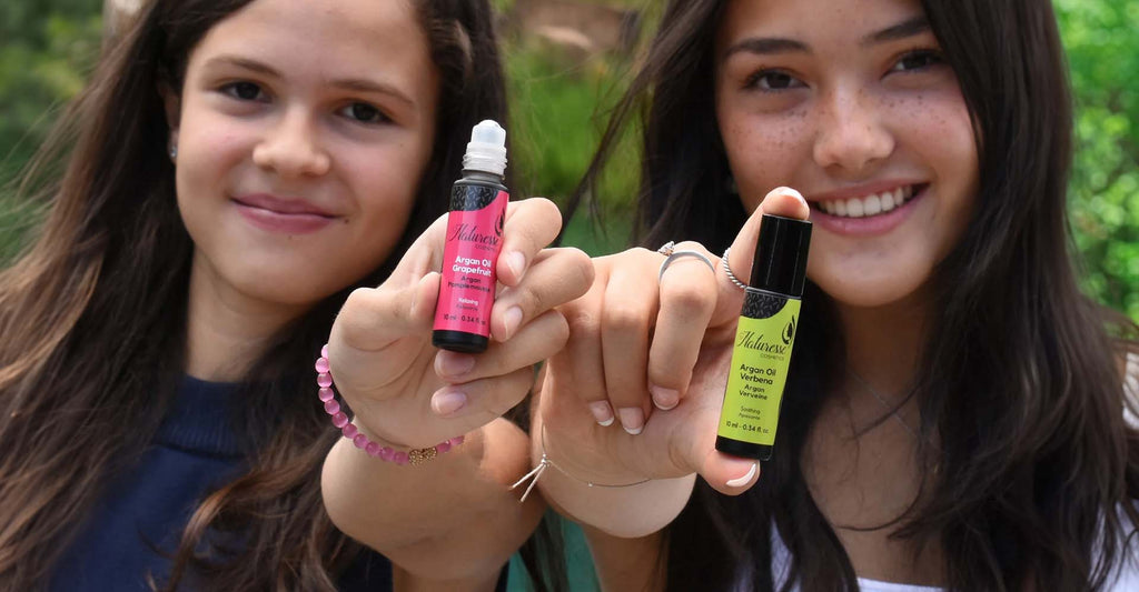* HUILE D’ARGAN MAROCAINE COMBINÉE À DIFFÉRENTES HUILES ESSENTIELLES PRATIQUE EN APPLICATEUR À BILLE :