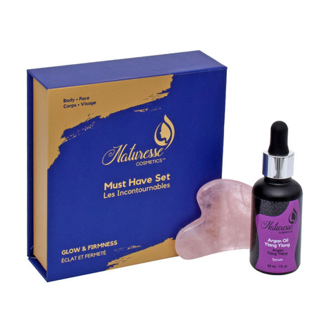 Glow Duo "The Essentials" Rose Quartz Gua Sha and 30ml Argan Oil Serum with Ylang Ylang